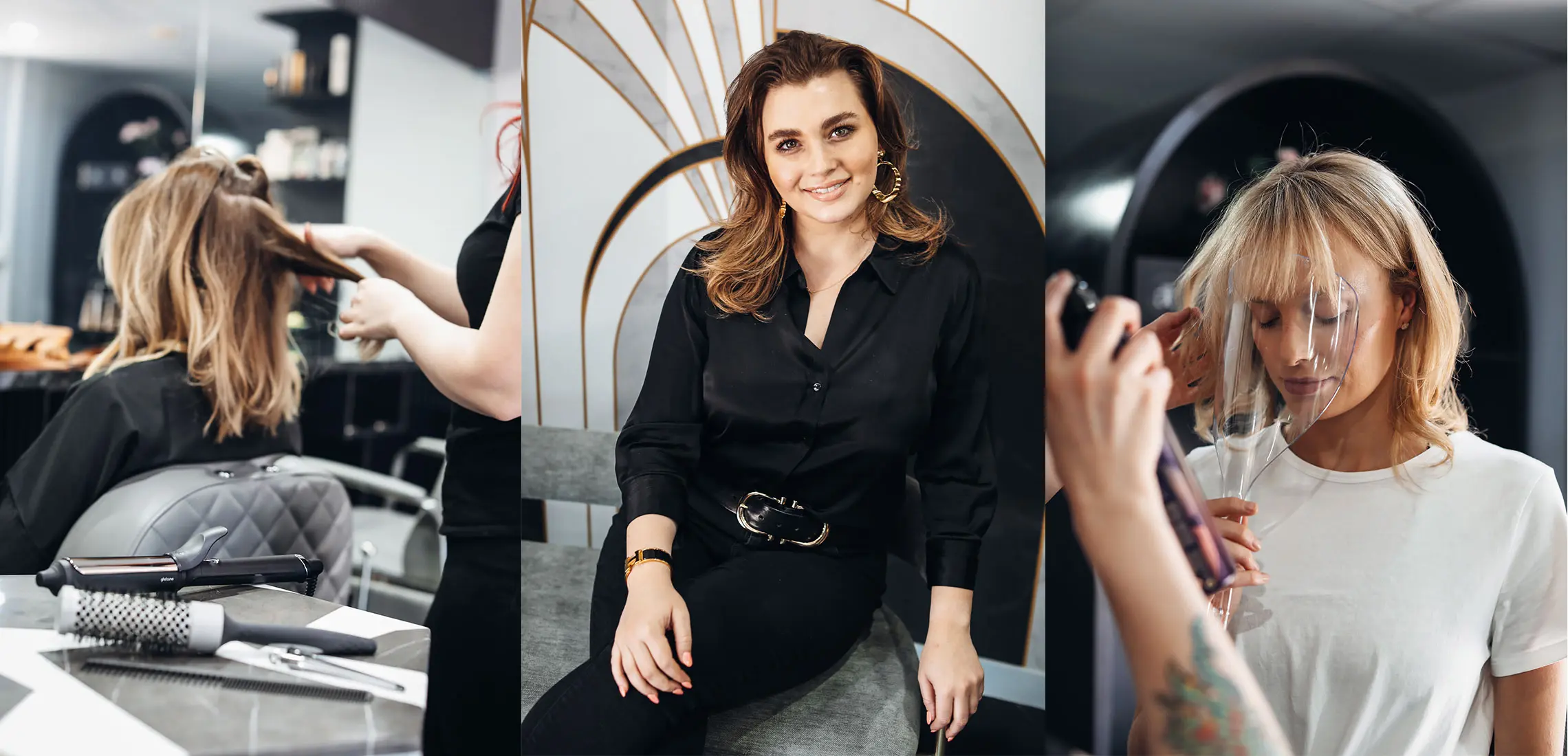 From the moment you walk in the door, an instant sense of relief washes over you, for there’s not a shadow of a doubt that you are in capable hands. First impressions will assure you that you have come to the right place to get a quick fix-up for your mane – the walls are packed with shelves of luxe haircare brands Oribe and R+Co, and the vibe is just… right. Moody décor, sparkling wine (or water – you choose), and the comfiest, most luxe black robes that’ll make you want to leave the salon wearing one.