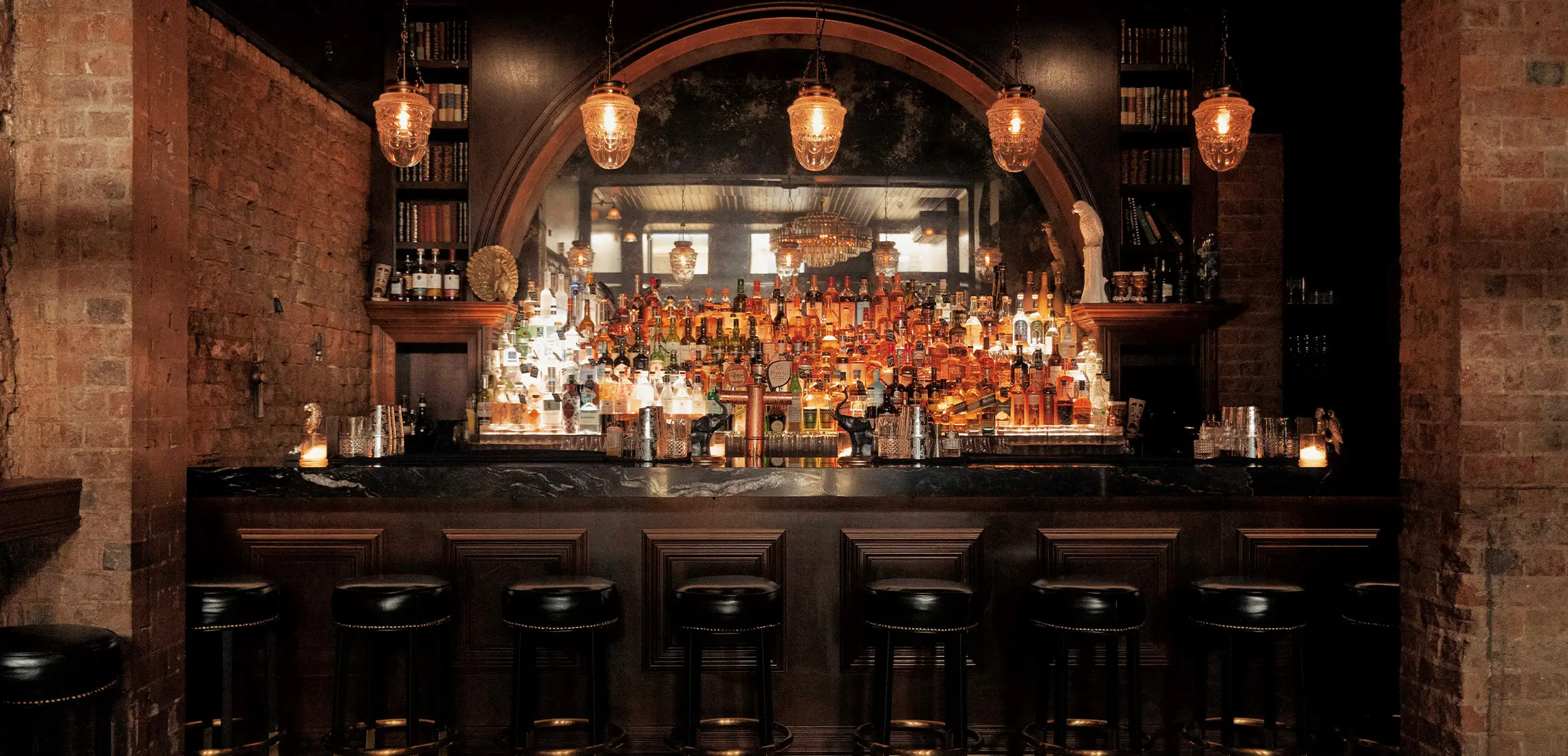 The 50-seater split-level space welcomes you in with an elegantly lit, arched wooden back bar, reminiscent of an Italian hotel lobby bar. Each curated design detail fits perfectly within Brisbane’s oldest laneway, from the hand-crafted black and white mosaic, to the marble bar top, gold chandelier, sunken seating area, and softly lit candles sending shadows dancing on the original building’s brick walls.