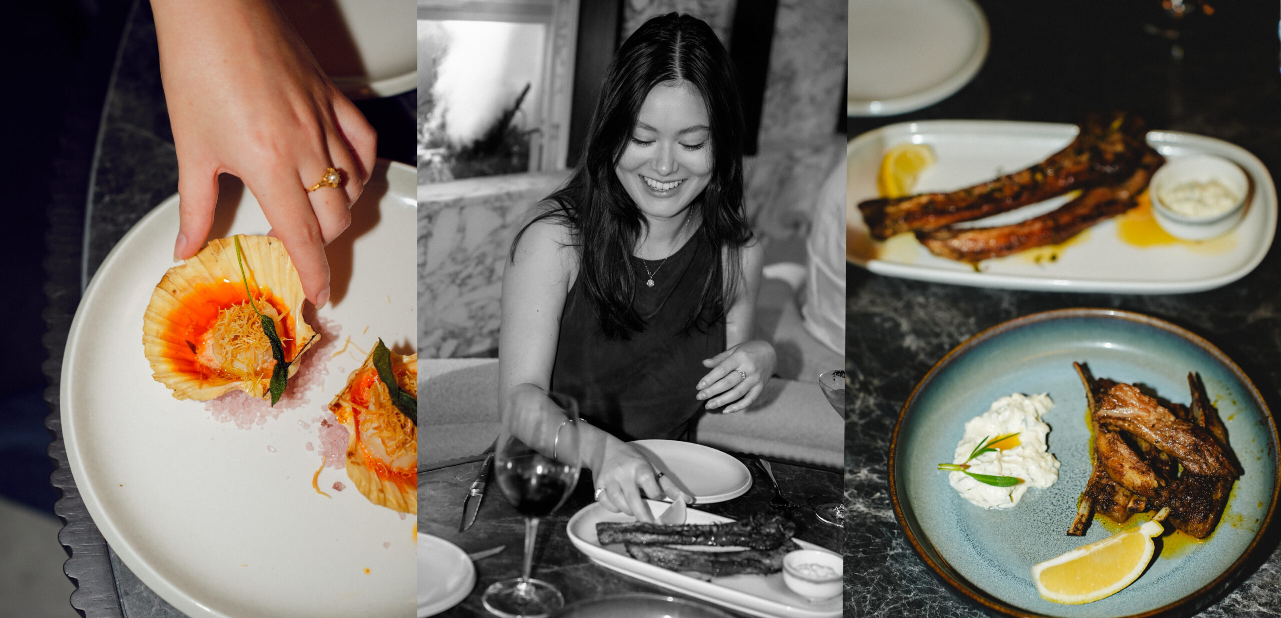 Deliberating between the numerous enticing banquet options, we opted for the nine-course Big Chop Banquet, which was generously priced at $54 per person, then eagerly awaited the first round of entrées: oysters, pillow bread, and tzatziki. The oysters, served natural on ice, were smooth and velvety, while the tzatziki – easily one of the best I’ve ever had – paired beautifully with the perfectly puffed pillow bread. We could have indulged in seconds (and thirds), but restraint proved wise, as the next wave of dishes was just as impressive. Moreish pastitsio bites (pasta, spiced meat sauce, and béchamel), woodfired scallops, and flash-fried kalamari dipped in paprika sauce – each plate was a hit.