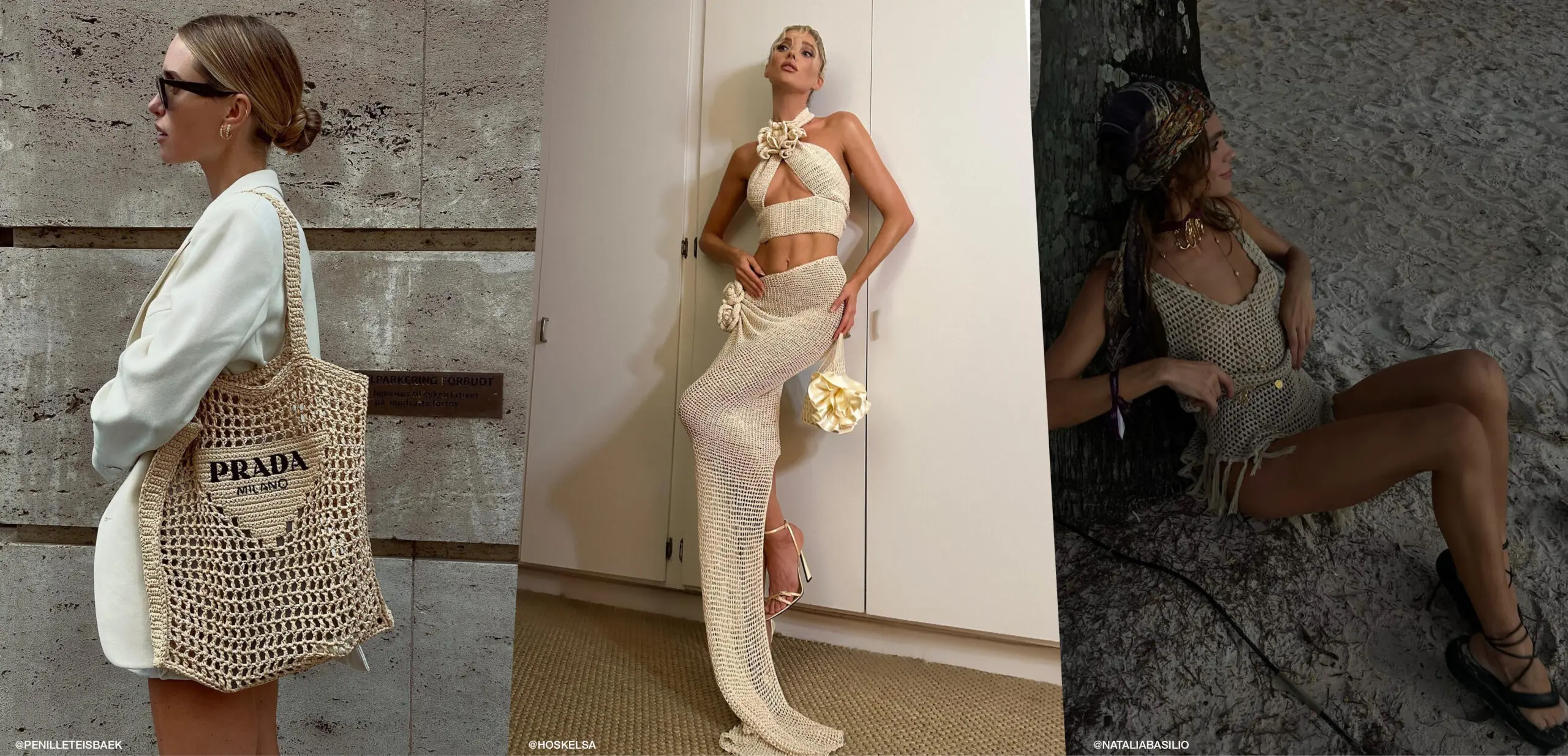 Now, we know a new trend can be a little overwhelming, however if you’re not down to go all-in on a funky, bold, and (quite-frankly) skin-exposing ‘fit just yet, you can ease into it with a subtle crochet accessory to trot to the beach in. Think crochet hat, crochet bag, or dare we say it, crochet shoes!