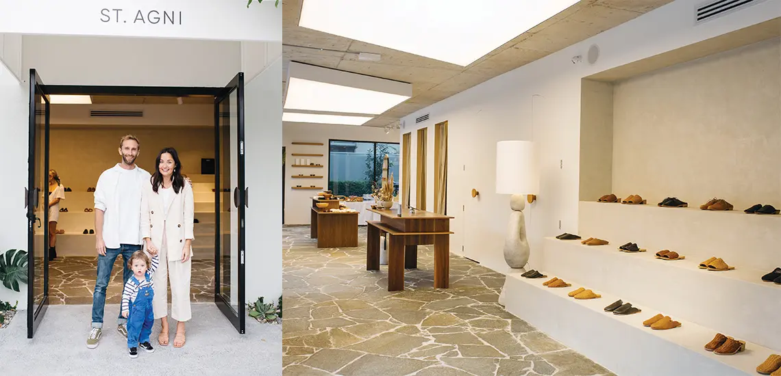 They started the business out of their linen cupboard with a $10,000 limit credit card, which was maxed out very quickly. First starting with footwear, then accessories, before introducing clothing to their ever-growing collection. St. Agni is named after Lara’s grandmother Agni, whom she considers as a saint.
