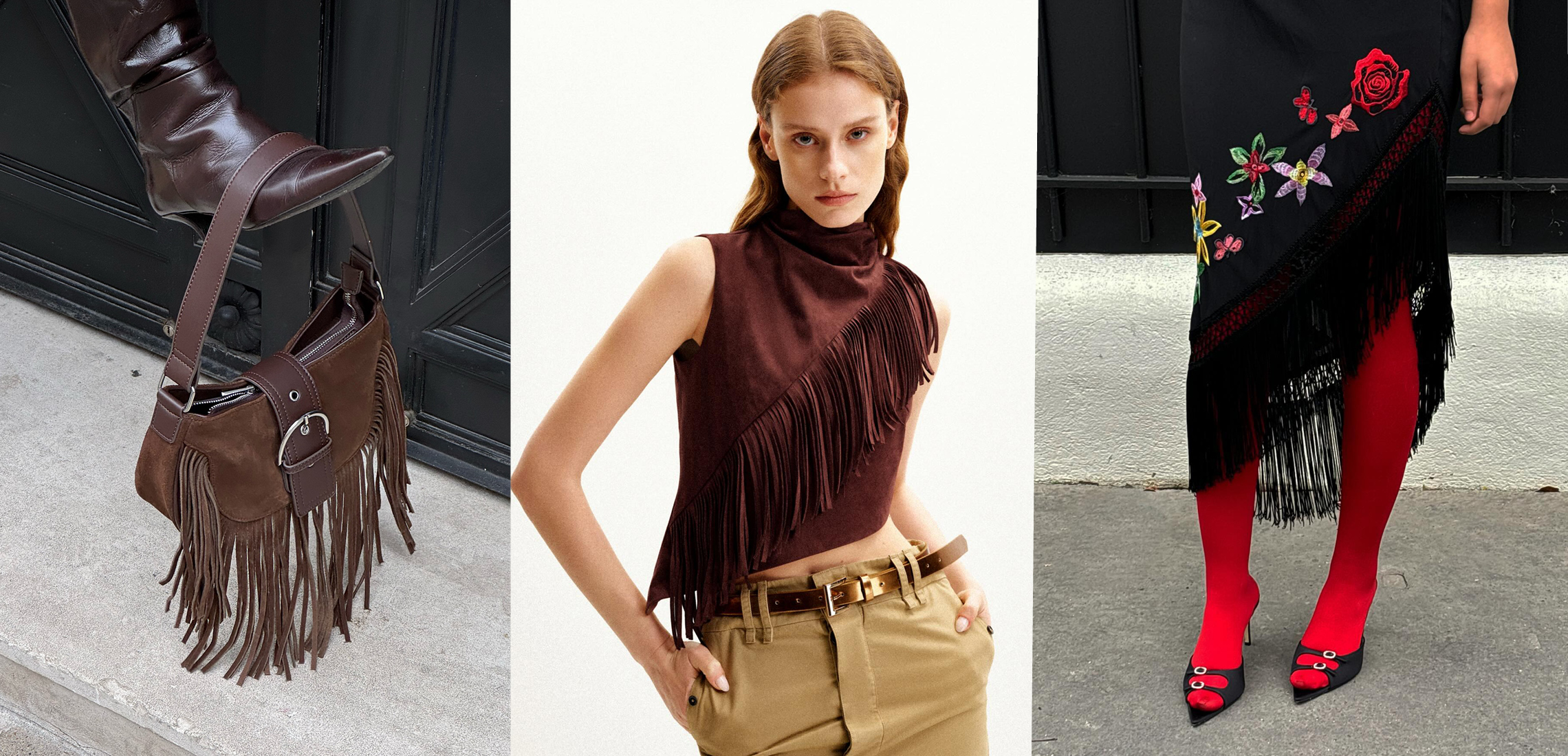 Accessories are your entry point if you’re not ready to go full flapper. A fringed clutch adds instant texture, while fringed loafers or boots keep things playful without overwhelming your outfit. Expect to see plenty of bags with swinging tassels this season – they’re the ultimate blend of function and fashion.