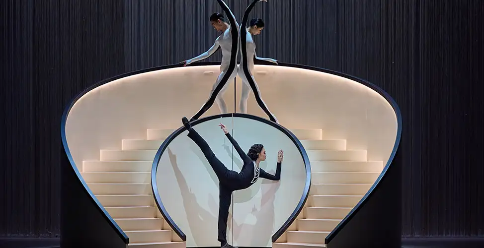 We drew inspiration for the sets from the bottle of Chanel No. 5. The Choreographer, Annabelle, and I visited Chanel Retrospective at the Palais Galliera in Paris in 2020, a showcase of Chanel’s history, legacy, and fashion. There we saw the original bottle of Chanel No. 5, and its simplicity was inspiring. I was amazed at how it hadn’t really changed in over 120 years – the bottle looks almost the same today. It truly is timeless. In Coco Chanel: The Life Of A Fashion Icon, I wanted to create something timeless, something that will last for many years to come.