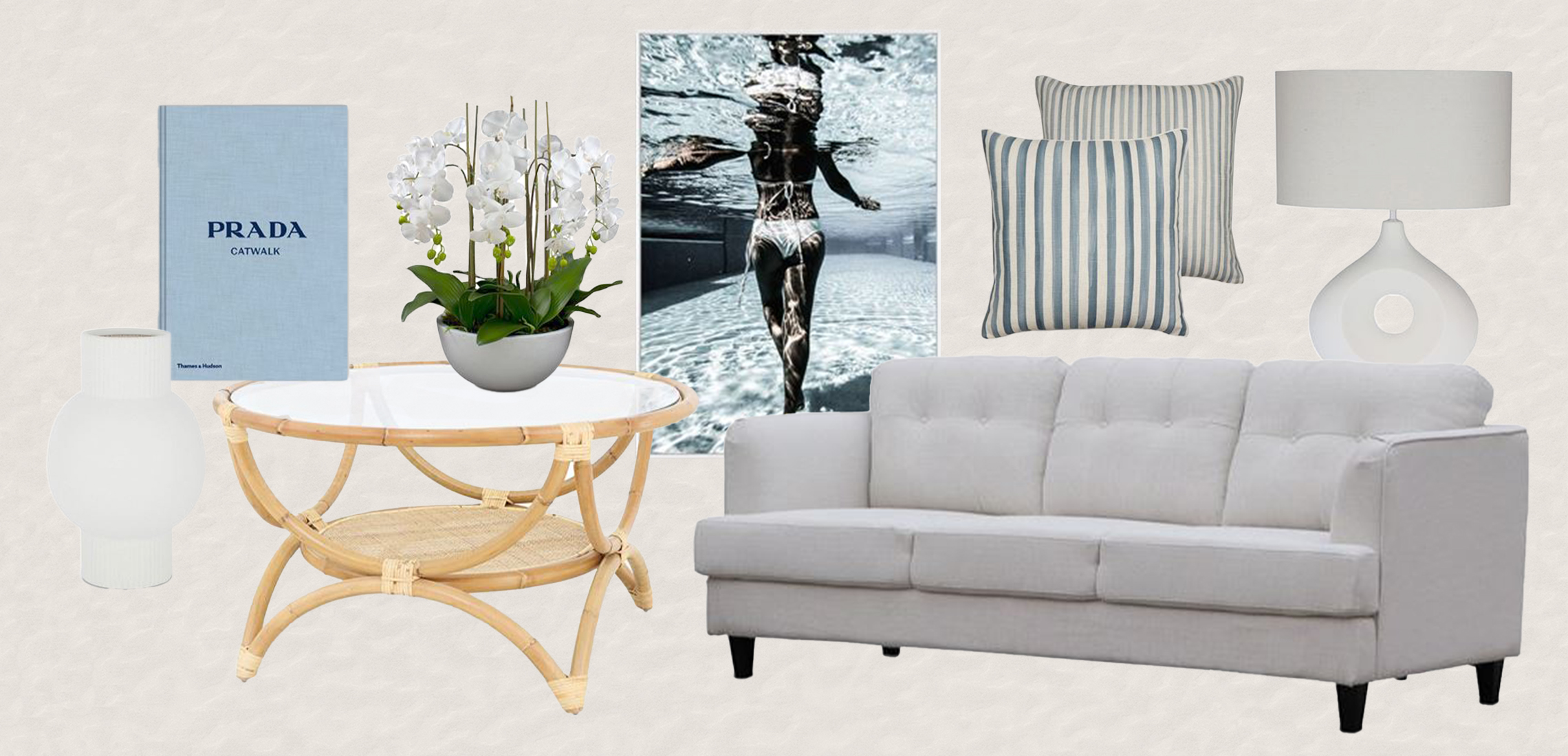 Our contemporary influence makes updating traditional styles for a spring/summer home an absolute breeze! We have a fresh take on coastal aesthetics, combining white sofas with black leather ottomans and light blue watercolour stripes. Those with a Hamptons-style space will benefit from our beautiful deep navy and Wedgwood blue chinoiserie patterned lamps. Our modern luxe styling is taking a new elegant approach as black and white fluted furniture merges with snow and vintage tan leather sofas. And, of course, we’re always paying homage to the art deco movement and are currently creating within that realm.