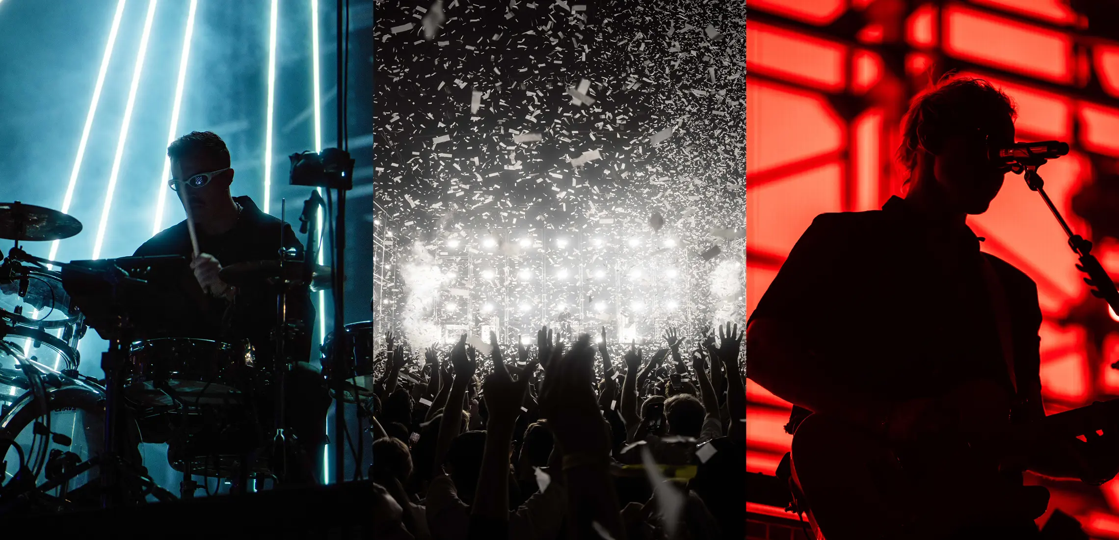 With the effortless swagger of seasoned Aussie artists, trio Tyrone Lindqvist, Jon George, and James Hunt immediately command their adoring crowd. Within 30 seconds, those in reserved seats are on their feet; within 60, the lyrics are echoing around the arena. It’s an audience in the know. The GA section moves like liquid under the beam of bright blue light. Something about their sound is otherworldly. It’s alien.