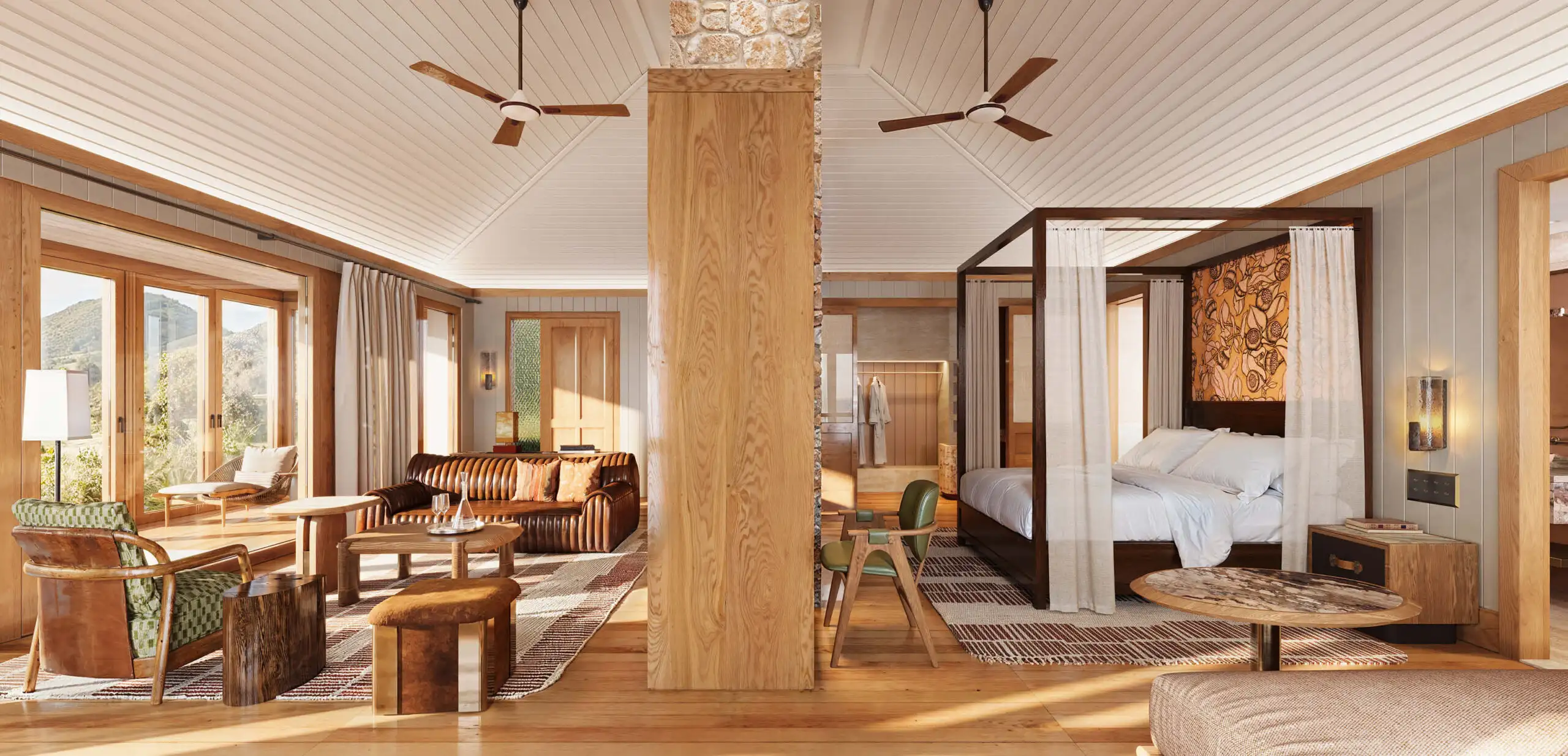 Emirates has been reshaping Wolgan Valley’s future since 2006, planting more than a million native trees, rewilding habitats, and preserving relics of the past, including the original 1932 homestead that will form the heart of the lodge. The space, which formerly belonged to Emirates One&Only Wolgan Valley until it closed its doors in 2023, has been reimagined as a safari-style retreat, all raw timber, natural textures, and materials that mirror the surrounding landscape.