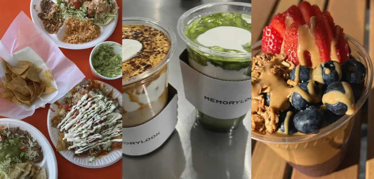 Mexican feed from Tacos Delta in Silver Lake, Matcha Einspanner from Memorylook in Korea Town, Acai bowl from Oak Berry in various locations.