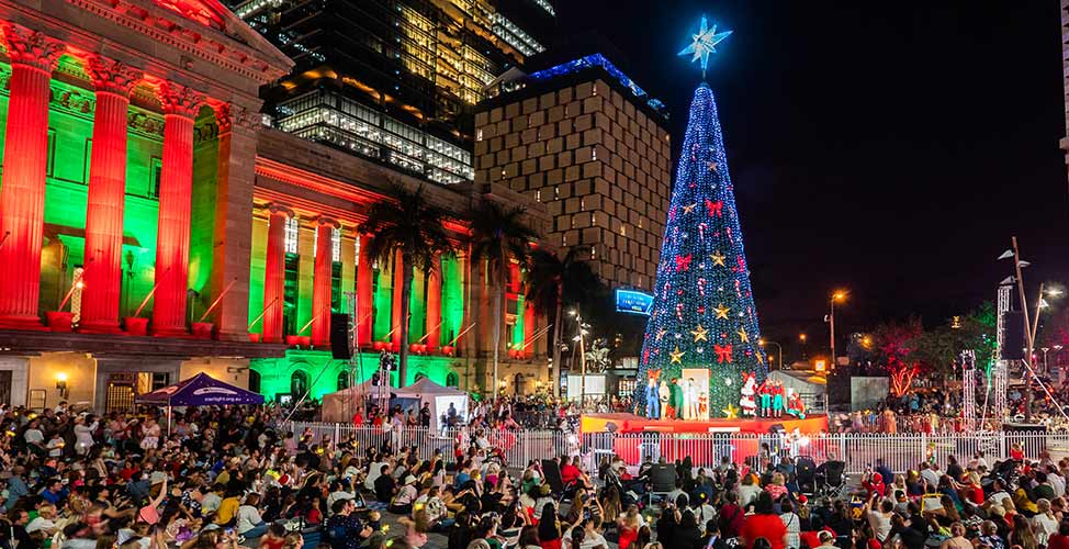 Really get into the festive mood this year and check out the dazzling decorations painting the town red (gold, and green). Embrace the holiday spirit – and your inner child – with The City’s holiday installations that are bigger, brighter, and more joyful than ever. And when it comes to Christmas in The City, your first stop simply has to be King George Square. Between the oh-so-captivating City Hall Lights and the iconic, sky-high Christmas tree, King George Square is serving up daily holiday delights.