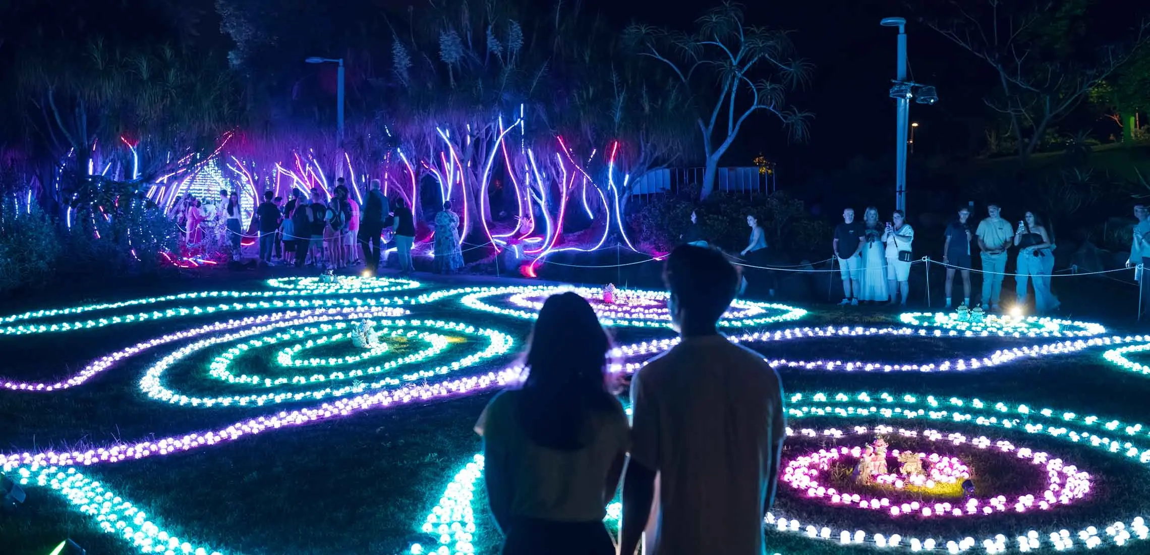 This year, The Enchanted Garden isn’t just glowing – it’s telling a story. Meet Willow and Marigold, the mischievous guardians of the garden, as they guide you through An Enchanted Eve, a playful and immersive narrative that brings the park to life in ways you’ve never seen before. From glowing fairy lights to bobbing orbs and spellbinding projections, every corner of the one-kilometre trail is packed with interactive surprises.